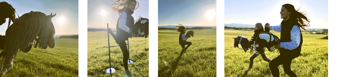 Hobby-Horsing ist eine kreative und sportliche Aktivität, bei der Teilnehmer auf Steckenpferden (gern auch selbstgebastelt!) reiten und verschiedene Dressur- und Springübungen ausführen. Es fördert nicht nur die körperliche Fitness, sondern auch die Kreativität und den Teamgeist.